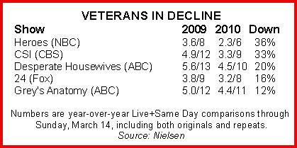 The proof, as always, is in the Nielsen numbers (see chart below). Signature series that transformed their respective networks and helped define the first part of the new century — "CSI," "Grey’s Anatomy," "Desperate Housewives" — are experiencing double-digit declines.