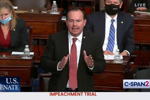 “Statements were attributed to me moments ago by the House impeachment managers,” Lee complained breathlessly at the end of the day’s session. “Statements relating to the content of conversations between a phone call involving President Trump and Senator Tuberville were not made by me, they’re not accurate, and they’re contrary to fact.”