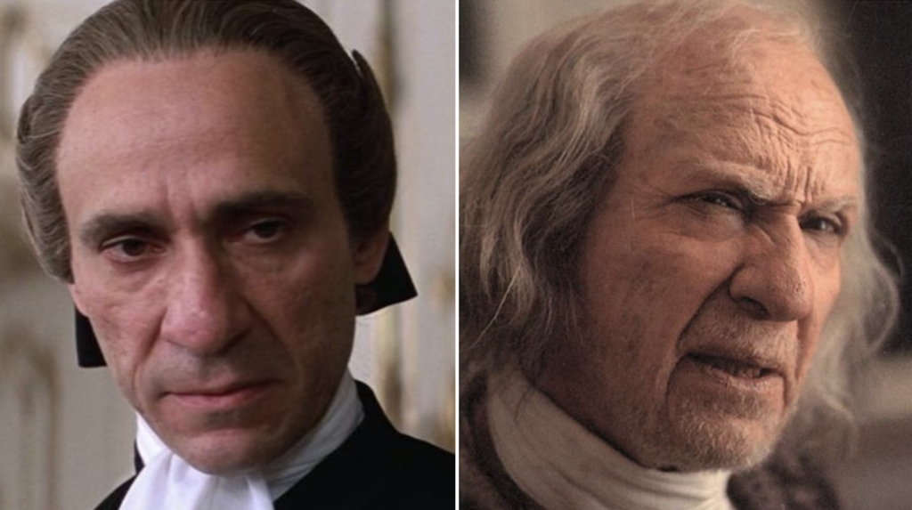 F. Murray Abraham appears as both the middle-aged and – thanks to makeup legend Dick Smith – quite curmudgeonly Salieri. Abraham and Smith scored two of the eight Oscars that the film won in 1985.
