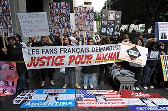 The Jackson family was also there in force, with even Janet — who was not there for the February hearing — showing up, wearing a grey jacket, big shades and a black skirt, accompanied by her brother Randy. Also in attendance: Jackson’s brother Jermaine and father Joe, who has issued notice to Murray that he intends to pursue a civil case against the doctor for wrongful death.