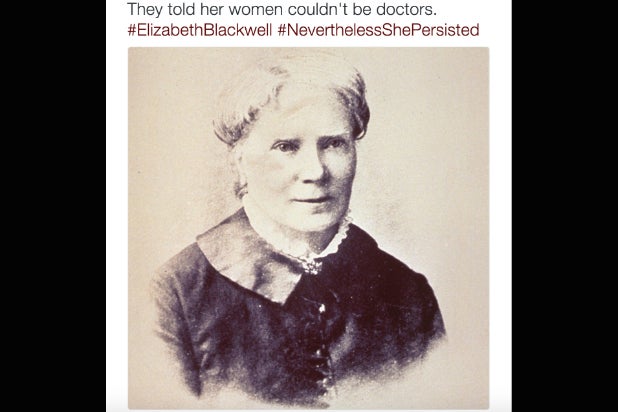 It’s captioned, “They told her women couldn’t be doctors. Nevertheless, she persisted.”