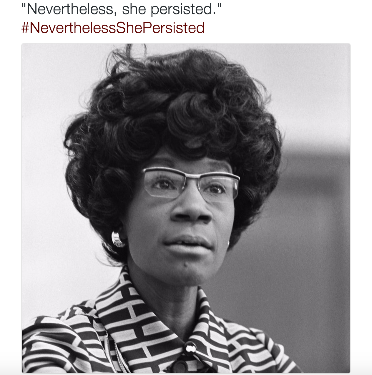 This meme is a photo of Shirley Chisholm, the first black woman to serve in congress.