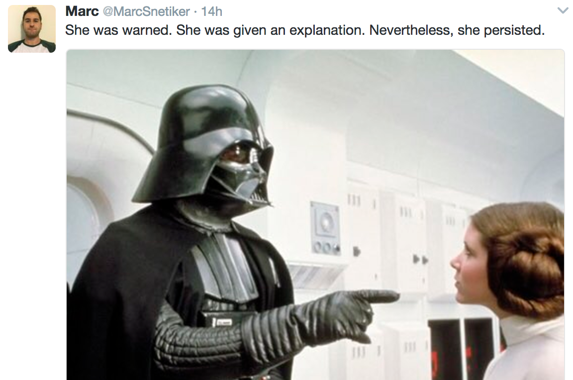 Bonus: “Star Wars” fans got into the meme, too. If you went to the L.A. Women’s March, you saw a lot of signs with Princess Leia. And she continues to persist.