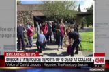 The conservative site Breitbart and others assert that guns were banned at UCC. This is not true. The student code of conduct bans guns “without written authorization.” Under Oregon law, the university could not ban people with a valid concealed carry license from bringing their weapons on campus. (They could ban gun from various buildings and facilities.) Conservative writer Dana Loesch, who initially claimed the campus was a “gun free zone,” updated her article to clarify that individuals with concealed carry permits were allowed to bring guns on campus. There was, in fact, someone on campus with a concealed carry weapon at the time of the massacre. A local reporter explained to CNN that it was legal for him to have such a weapon on campus.