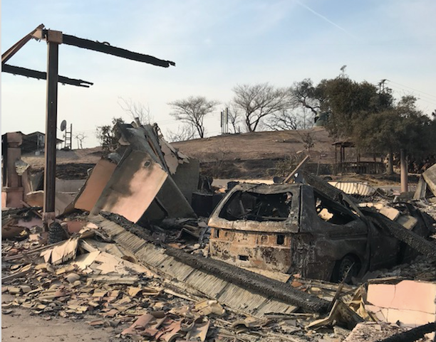 Not everyone was lucky. The charred remains of something called the Ojai Prayer Club stood like a wounded sentry on the mountain above the valley. The fire blew through every inch of this retreat, which up to a week ago had majestic views.