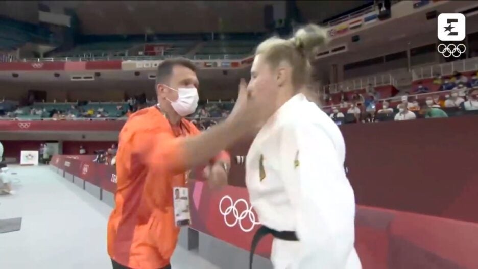 A video of German Olympic Judo fighter Martyna Trajdos being slapped in the face and shaken about by a coach before her match at the Olympic Games in Tokyo made waves online Tuesday, but Trajdos said that the entire incident was intentional.