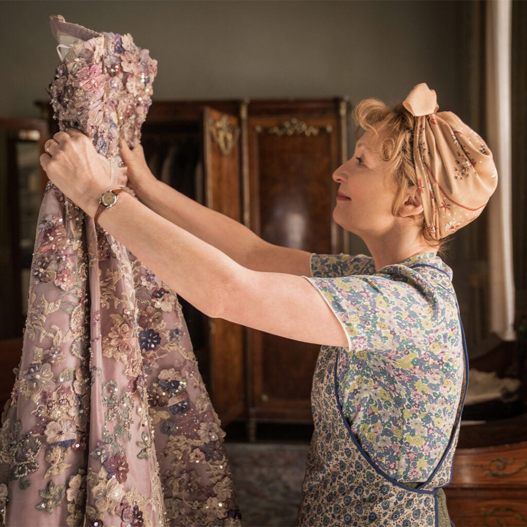 Last year’s winner for “Cruella,” Jenny Beavan earned her 12th nomination for this tricky assignment, which entailed creating 20 new gowns in the spirit of vintage 1950s Christian Dior. Beavan, who’s also won Oscars for “A Room With a View” and “Mad Max: Fury Road,” said, “There are some black-and-white gowns, of course, because it’s Dior. But I did want strong colors for the three dresses that tell our story — pink, bright green and deep red — because that’s what the character in our film would have loved.”