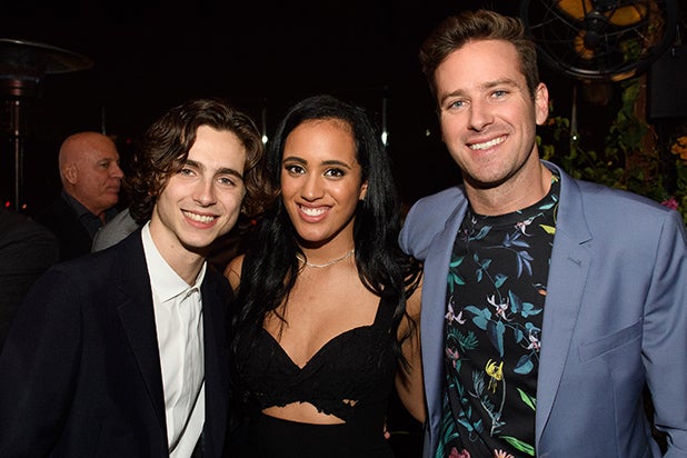 Speaking of love being in the air. The “Call Me By Your Name” guys (Timothée Chalamet and Armie Hammer) flank the new Golden Globe Ambassador, Simone Garcia Johnson. She’s The Rock’s 16-year-old daughter.