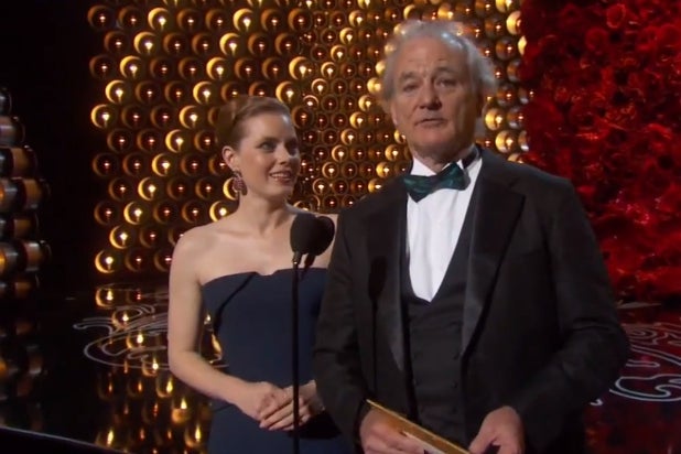 After rattling off names of the actual nominees for Achievement in Cinematography, Murray turned to camera, saying, “Oh, we forgot one: Harold Ramis for ‘Caddyshack,’ ‘Ghostbusters’ and ‘Groundhog Day.’”