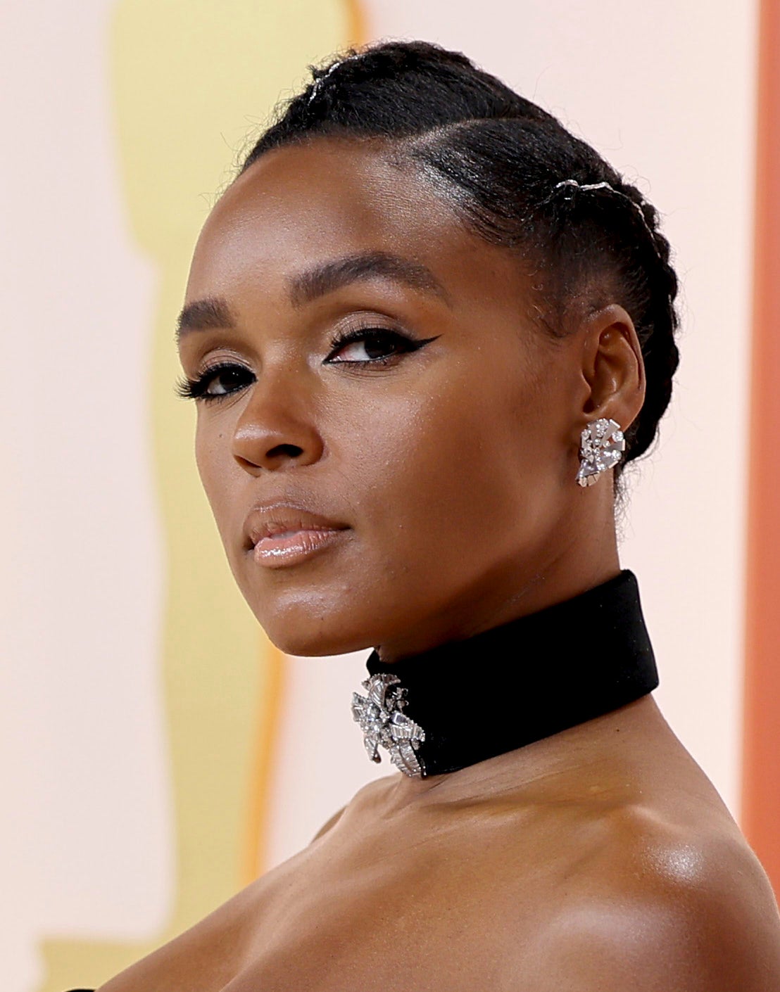 It’s all in the details, isn’t it? Whether it’s dangling chandelier earrings (Chopard on Emily Blunt), or small sculpted ones (on Jamie Lee Curtis), a sparkly diamond choker (Tiffany’s on Lady Gaga), an iconic diamond snake coiled around a delicate neck (Bulgari Serpenti on Angela Bassett), long smooth hair with Old Hollywood waves (Renato Campora) for Jessica Chastain, or 1950’s style rich red lips (Michelle Williams’ makeup by Angela Levin), Oscar style is made up of many elements, from head to toe. In this case, the whole is actually equal to the sum of the parts.