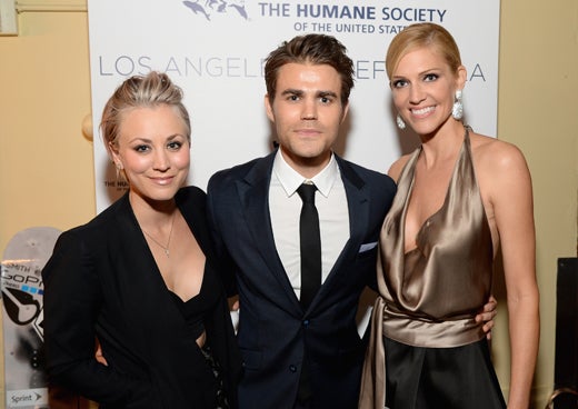 “”If I have any sort of voice in this world to help and protect, (I will) do what I can to help these animals survive,” Kaley Cuoco-Sweeting said backstage at the Humane Society of the U.S. benefit on Saturday night. Paul Wesley and Tricia Helfer posed with Kaley.