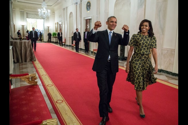 As he left the ceremony, the President mimicked Elliott on the bike as the U.S. Marine Band played the theme from Spielberg’s “E.T.”