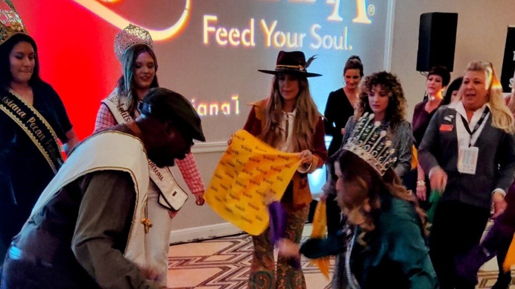 So when the Louisiana native got the call to join Louisiana Tourism on their Rose Parade “Feed Your Soul” float, she was ready and willing. We caught up with her at the Welcome Reception at the Hilton Hotel Pasadena, which was complete with beads, gumbo, charred oysters, tiara-ed beauty queens and even an impromptu second-line parade.