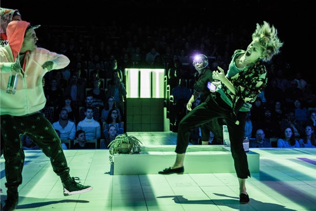 Equally dazzling are the many Emmas who join Gough during some of these high-tech melees. It’s both creepy and fascinating when the stage does somersaults in act one, so it should come as no surprise when Herrin feels the need to repeat the stunt in the far weaker second act.