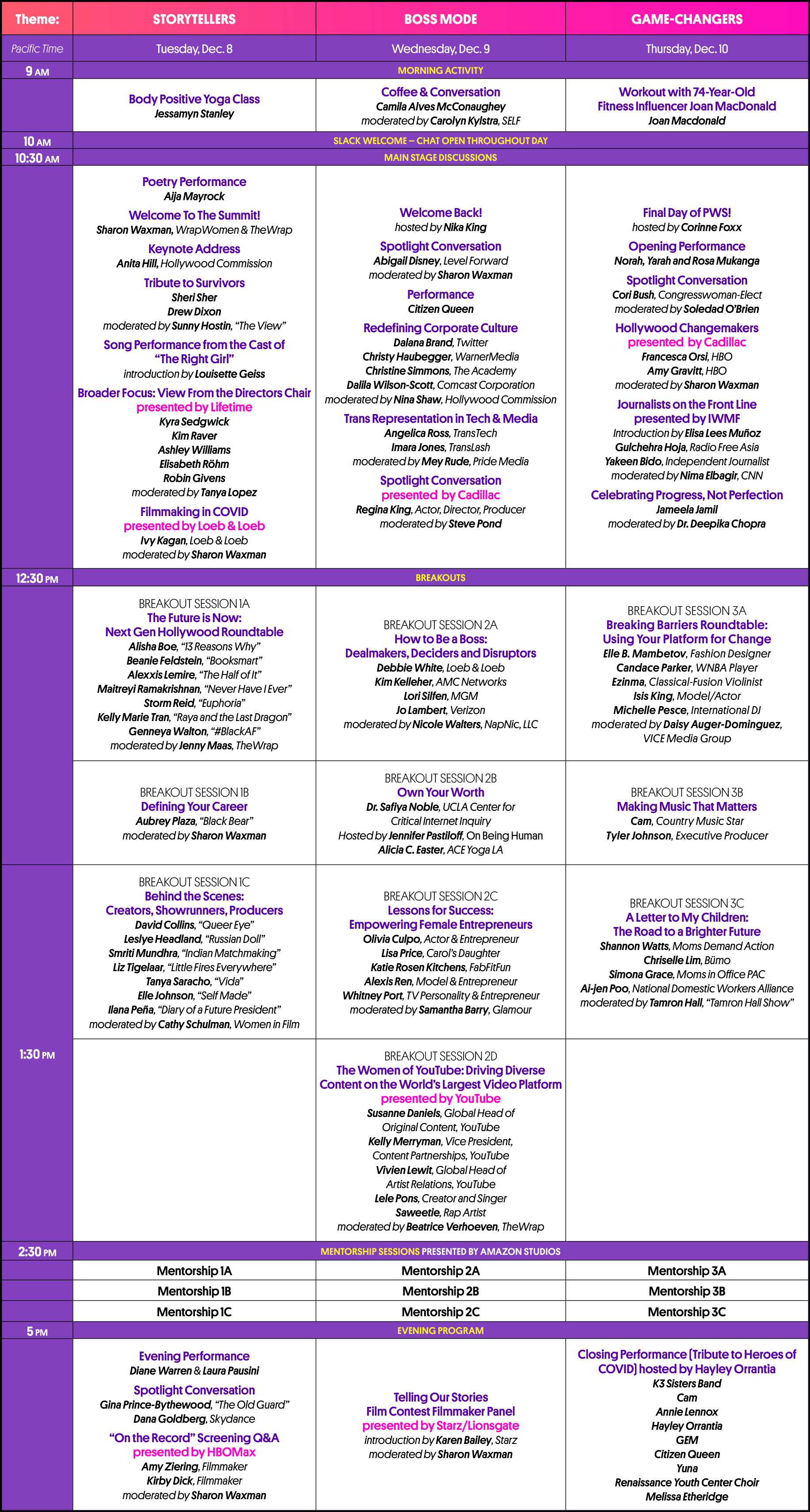 While this year’s PWS event is FREE for all attendees, there is a limited opportunity for small group mentorship with industry leaders available for a $99 ticket upgrade. Mentorship registration is officially closed. We will aim to accommodate interested parties based on remaining sessions.