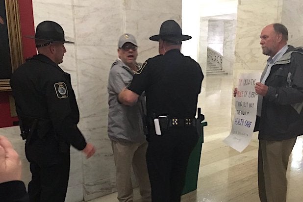 Price and Conway were in Charleston, W. Va., to meet privately with state and local policymakers and community groups, according to the Associated Press. The Capitol was filled with protestors when Heyman was arrested. West Virginia has the nation’s highest rate of opioid overdoses.