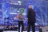 The footage — a grainy mirror image of a scene from a 2007 WrestleMania stunt involving Trump and WWE CEO Vince McMahon — shows a pink-tie-wearing Trump jumping a suited figure on the side of a wrestling ring, tossing him to the ground and then punching him in the face before walking away in triumph.