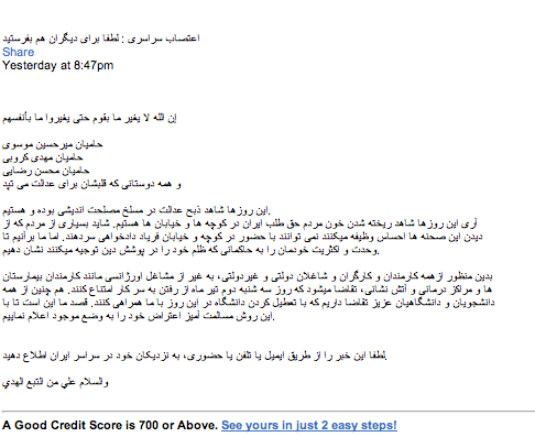 Everyone here — including Nahai and his wife, author Gina; Joe Shooshani, a prominent local developer; and Jacques Barlava, who was the host of the afternoon — get email updates and exhortations about the latest protests like the one below.