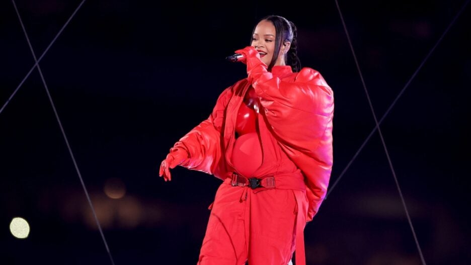 Rihanna rubbing her belly during her halftime show at the Super Bowl on Sunday had fans wondering: Is she pregnant again?