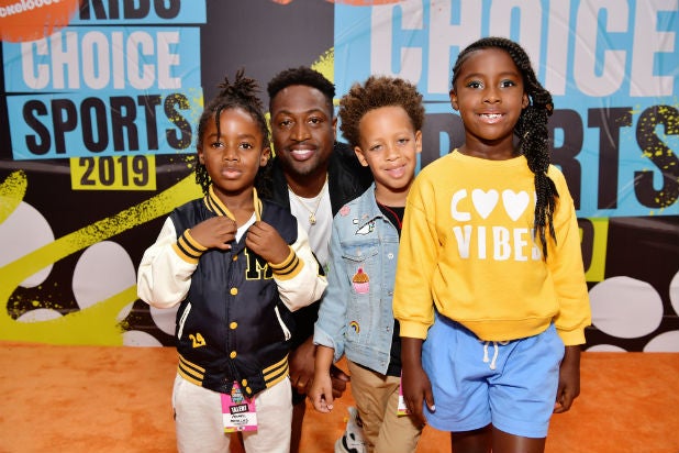Legends Award honoree Dwyane Wade walked the orange carpet with his kids at the Nickelodeon “Kids’ Choice Sports” before getting drowned in gold slime … (be sure to take that expensive watch off, Wade!)