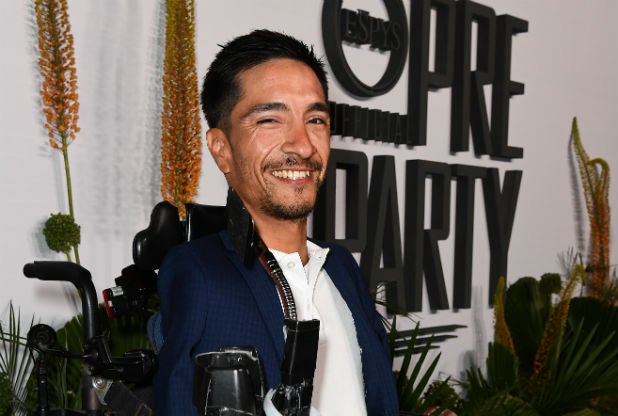 Jimmy V Award for Perseverance honoree Rob Mendez, a football coach born without arms or legs, joined in the dance-off with the Gronks, Paralympians and Afghanistan veteran Israel Del Toro.