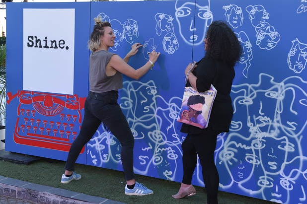Guests leave their marks on the coloring wall illustrated by Jen Wilde at the second annual Power Women Summit marketplace.