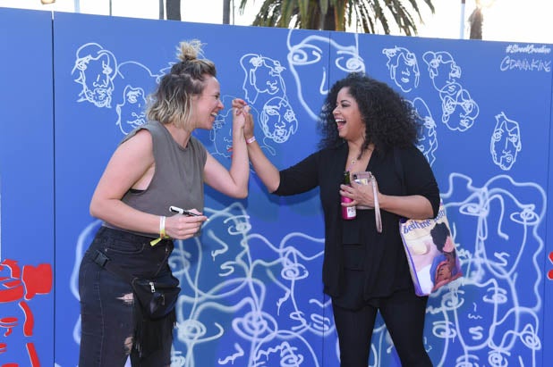 Actress Lolo Spencer colors in her likeness on the coloring wall at the second annual Power Women Summit.