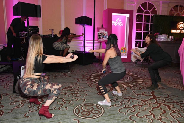 Guests pose with Mattel’s Barbie box in the marketplace at the second annual Power Women Summit.