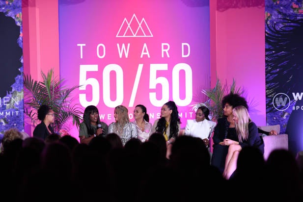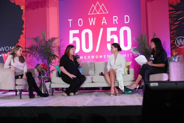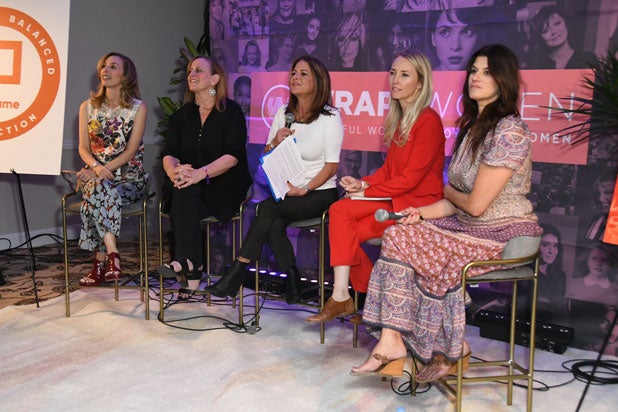 Producers Erica Huggins, Cindy Chupack, Cathy Schulman, Cassidy Lange and Mattel’s Robbie Brenner speak about reframing the entertainment world for gender parity at the Power Women Summit.