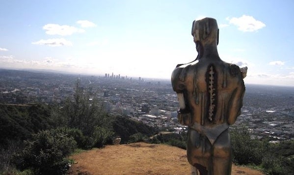 A pair of mysterious "skeleton-Oscar" statues showed up in two famed Los Angeles locations on Thursday morning: One at the highest peak of Runyon Canyon, near the Hollywood sign, and another in the parking lot of Mel’s Drive-In diner, near the corner of Hollywood and Highland — where the Oscars are held.