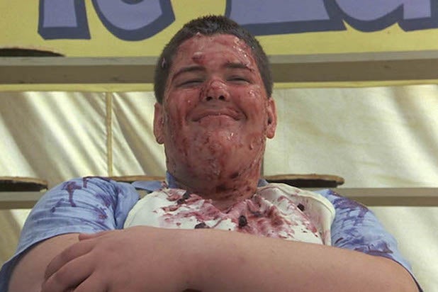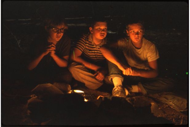 Wheaton on the story his character Gordie tells by the campfire: “Lardass [pictured left] outsmarted them all. Everybody keeps underestimating him. To all the people who judge him because he’s overweight, they’re only seeing what’s on the surface. Think about how Gordie’s mind works. The story he tells is about kid who defies what everyone sees. If there’s a message beyond the barf-o-rama, it may very well be as deep as that you have to look beyond the surface.”