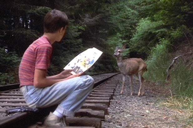 “I remember the crew brought that doe in and they just wanted her to walk across and stop,” said Wheaton. “We filmed it early in the morning — and I’m bad at mornings. What I remember is they put some grapes on the track and she walks up, leans down and eats them. I don’t remember what they did to get her attention to have her look up at me. But she was, like, ‘Cool, I guess I’m going to hang out here now.’ She wouldn’t leave. So all these people on the set start banging things together. In the film, it is just an incredible, beautiful moment. But on the set it starts out as peaceful moment and then just got really noisy. I love that shot of Gordie. It’s so sweet and relaxed.”