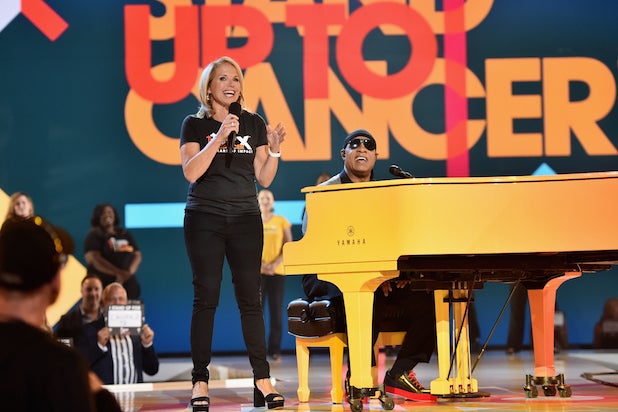 The show at the Barker Hangar in Santa Monica brought out many high-profile figures to man the donation call stations from the wings, many of whom have been affected or have had family members affected by cancer. Among them, Matt Damon, Jason Bateman, Josh Brolin, Sofia Vergara, Sarah Hyland, Tony Hale, Maria Menounos and Max Greenfield. Celebrity speakers included Mahershala Ali, Ed Helms and Katie Couric, who is one of the organization’s co-founders.