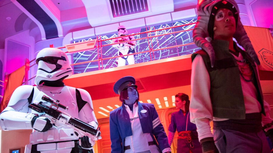 Anisha Deshmane: I think there’s also an element there of gameplay, too. As you mentioned, making sure that this experience is a new version of immersive theater that incorporates a lot more of the passenger input, right? So everyone on board the ship is contributing to that story. Everyone on the ship is connecting the pieces that they see at bridge operations training and lightsaber training and the interactions that they have with performers in real life and their datapad, as well. And, making sure that it’s all sort of a seamless experience over the course of those two days.