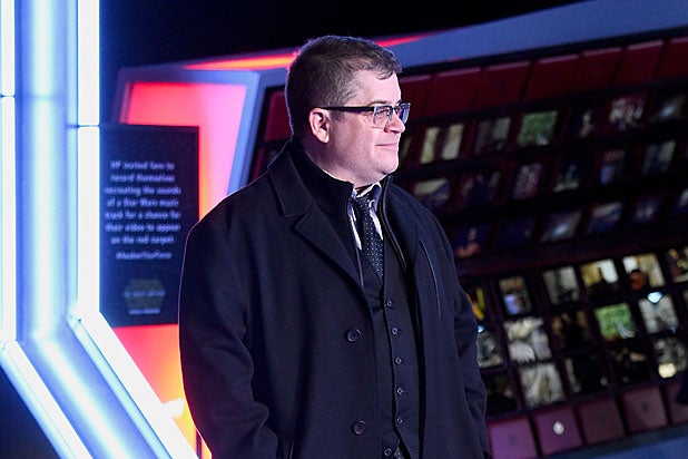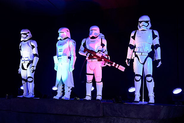 ‘Star Wars: The Force Awakens’ imagery and signage are displayed along the red carpet.