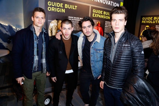 Austin Lyon, Nick Jonas, Ben Schnetzer, and Gus Halper at the Eddie Bauer Adventure House.