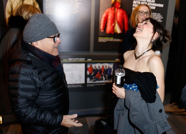 Adam Scott, Naomi Scott, Bradley Whitford, and Judd Apatow shed their coats at the Eddie Bauer Adventure House.