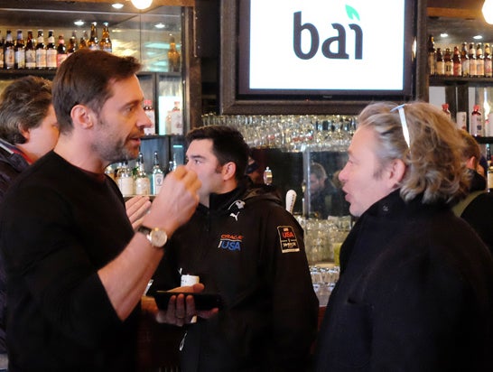 Hugh Jackman and Director Dexter Fletcher celebrated “Eddie the Eagle” with antioxidant Bai superfood sips at a lunch on Tuesday.