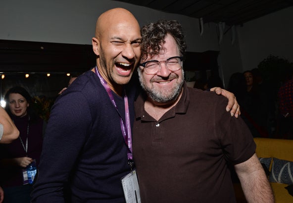 Keegan-Michael Key and Kenneth Lonergan share a laugh at “Manchester by the Sea” on Saturday night.