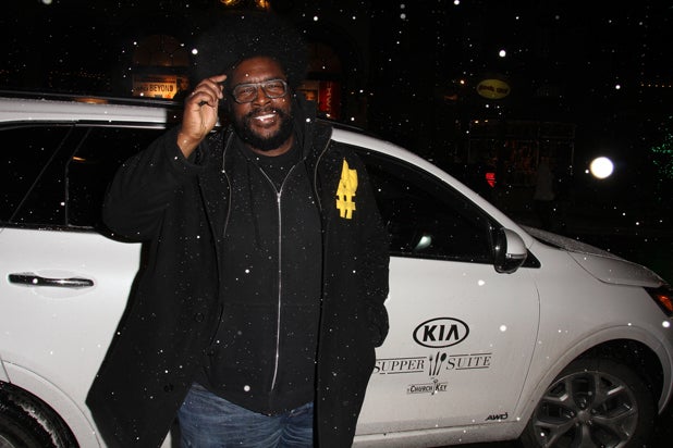 Questlove arrives at the Kia Supper Suite to spin Spike Lee‘s dinner party.