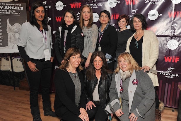 On hand from the back row: Meera Menon, Clea Duvall, “Tallulah” director Sian Heder, Stacey Wilson Hunt, Sheena Joyce, Maggie Greenwald, and kneeling in the front row, Women In Film Executive Director Kirsten Schaffer, Women In Film President Cathy Schulman and Lucy Webb.