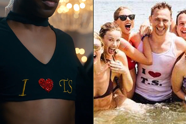 In the portion of the video that many have compared to Beyonce’s “Lemonade,” Swift’s backup dancers are wearing crop tops emblazoned with “I <3 TS," which is eerily similar to ex-boyfriend Tom Hiddleston's tank top.