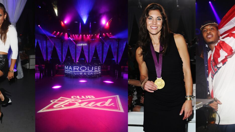 Hollywood’s hospitality dream-team popped up in London over the weekend to shepherd Olympians-turned-stars through their first red carpet nights out at Club Bud, a two-night party venue of imported U.S. nightlife brands TAO and Marquee.
