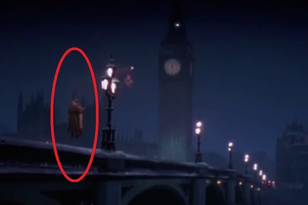 There’s a longstanding report that two people seen kissing on a bridge in one scene are, in fact, “Star Wars” colleagues George Lucas and Carrie Fisher. The scene happens early in the film as Tinkerbell (Julia Roberts) carts off Peter Pan (Williams) to Neverland.