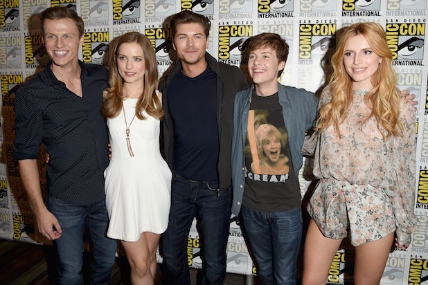 Actors Connor Weil, Willa Fitzgerald, Amadeus Serafini, John Karna and Bella Thorne attend the “Scream” press room during Comic-Con at the Hilton Bayfront