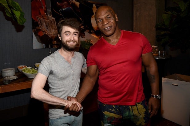 Actor Daniel Radcliffe and professional boxer Mike Tyson attend the Getty Images Portrait Studio at Hard Rock Hotel