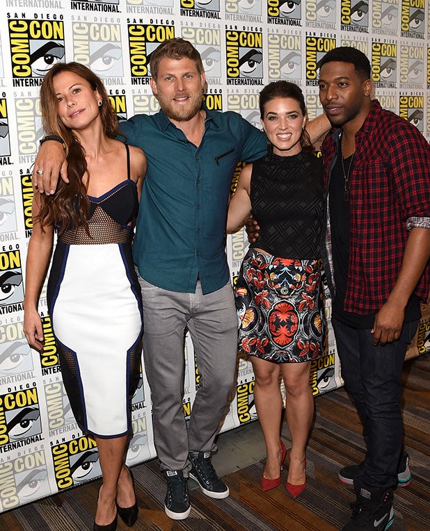 Actors Rhona Mitra, Travis Van Winkle, Marissa Neitling and Jocko Sims attend TNT’s “The Last Ship” Press Room during Comic-Con International on July 9, 2015