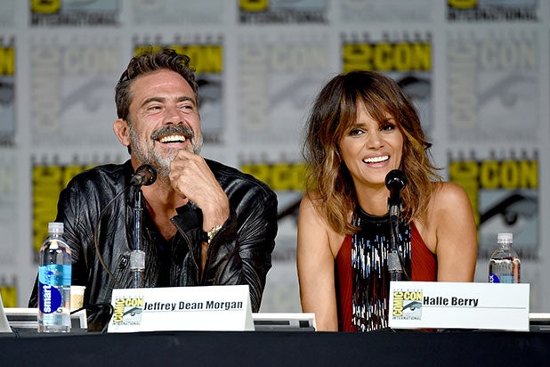 Jeffrey Dean Morgan and Halle Berry speak onstage during CBS TV Studios’ panel for “Extant” at Comic-Con