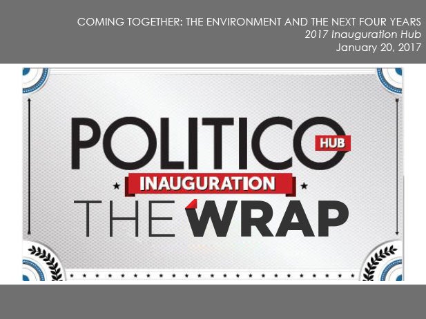 On Friday, January 20, the top of the W Hotel across from the White House will be transformed into POLITICO’s 2017 Inauguration Hub. It will welcome a mix of political leaders, activists and respected business and cultural figures. Programming at the Hub will include a panel on the future of environmental policy — co-moderated by Wrap Editor Sharon Waxman and POLITICO Editor John Harris — titled “Coming Together: The Environment and the Next Four Years.”
