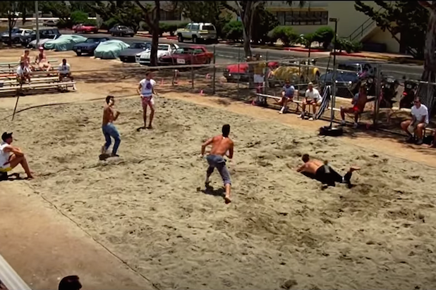 In the famous scene, Maverick (Tom Cruise) and Goose (Anthony Edwards) play volleyball against Mav’s ultimate adversary, Iceman (Val Kilmer), and his co-pilot Slider (Rick Rossovich). Aside from that beat, there’s not much more story told during the sweaty sequence except for the buildup of Maverick’s impending hot date with Charlie (Kelly McGillis).